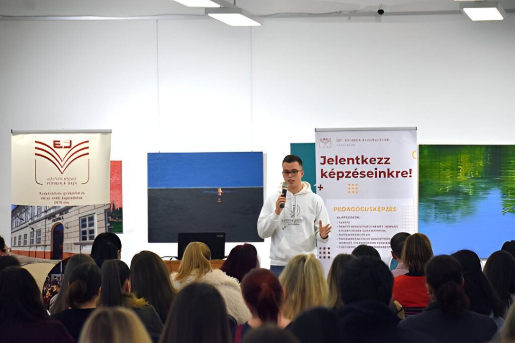 Ladányi Éva from the Institute of Teacher Education presented the bachelor’s programs in primary education, early childhood education, and infant and toddler pedagogy. She emphasized the practical focus of these programs and the career opportunities they open for graduates. Following this, Dr. Krisztina Keresnyei from the Institute of Economics introduced the Business and Management bachelor’s program, detailing its unique features and the professional pathways available to alumni.